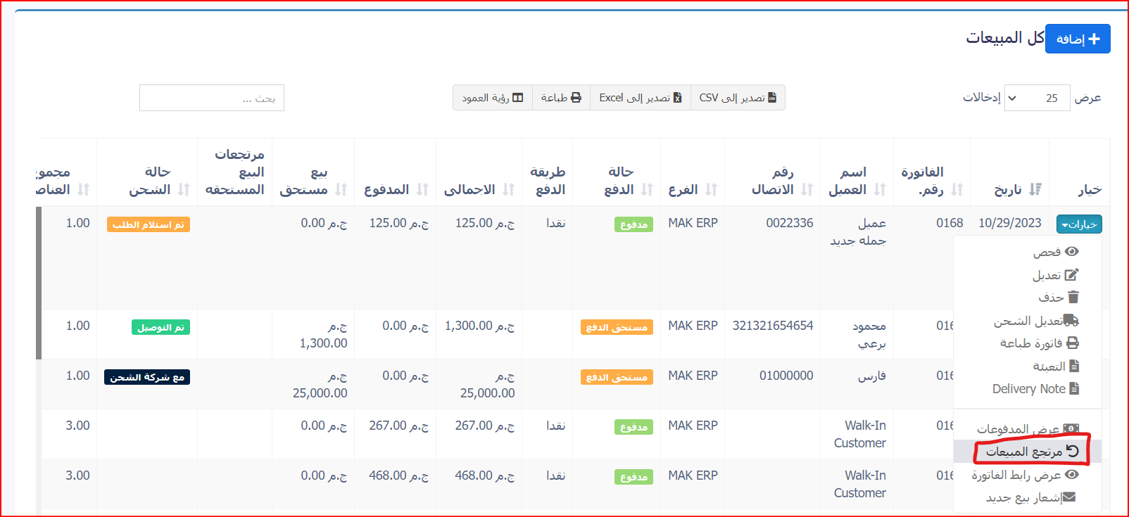 هناك طريقتان لإضافة مرتجع المبيعات